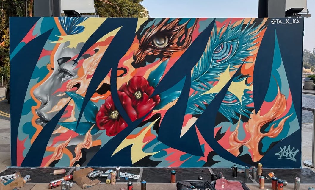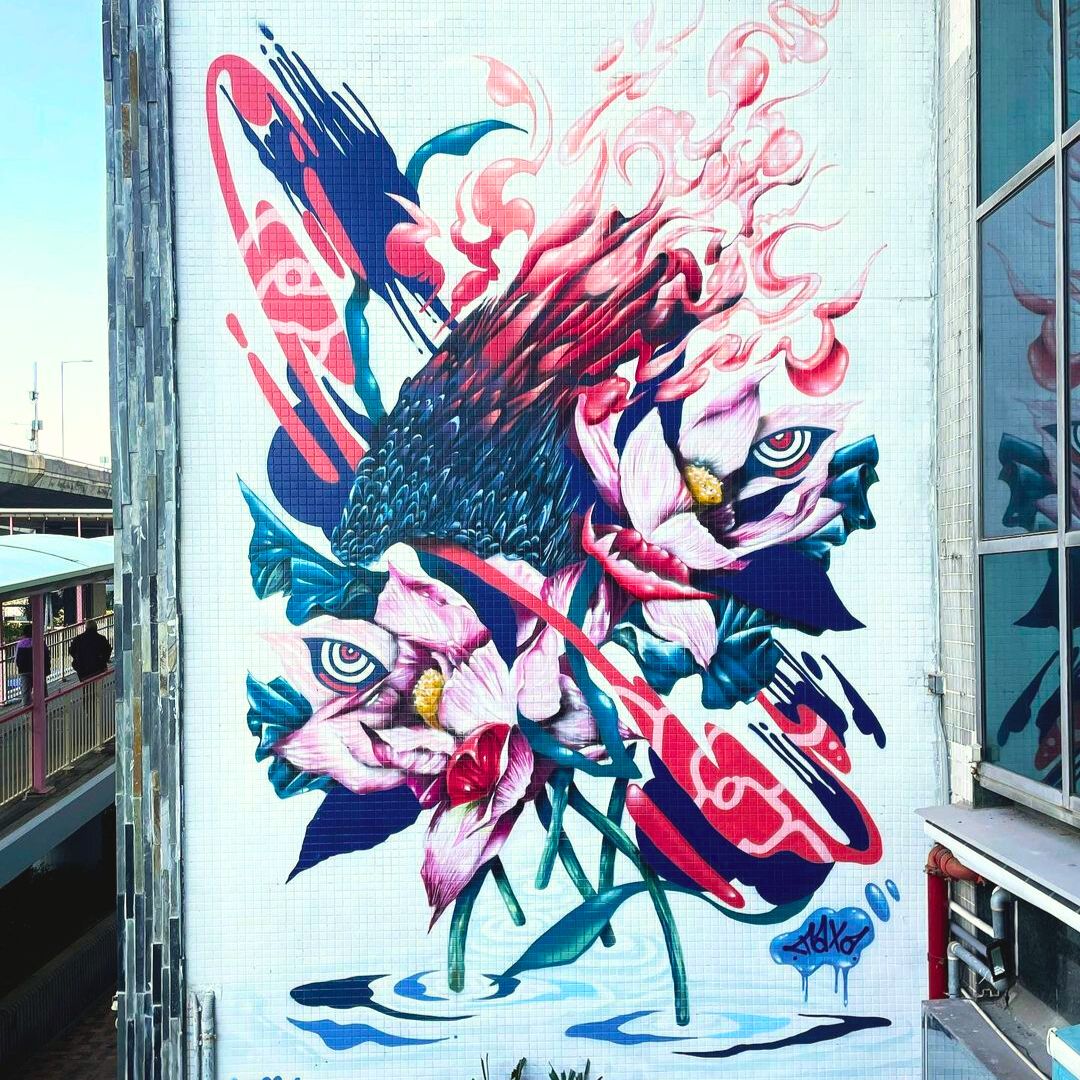 Vibrant and symbolic, this mural art stands as a testament to resilience and transformation. Created by artist TAXA for the Weez Walk 2025, the work incorporates the 'WEZ' letters that echoes with the campaign that is created in memory of Jamie Bruno. It also features powerful visuals of a phoenix, a face representing courage and determination, and Jamie's favorite flower - the euphorbia milli. Phoenix - the mythological creature that emerges reborn from the flames - is a profound symbol of growth, rebirth, and the ability to overcome even the greatest challenges; it reminds us that no matter the struggles we face, we too can rise up stronger than before.