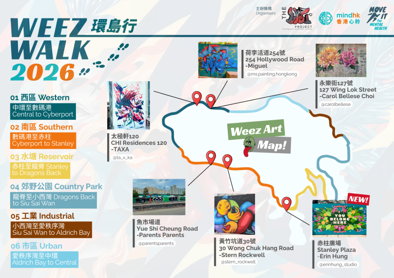 The Weez Project believes street art is a powerful way of expressing and promoting mental wellbeing. Supported by various local artists, several Weez Walls and Weez Art installations with a mental wellbeing theme have been created over the years.